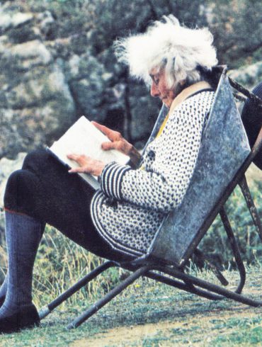 Von Rowena Cade gibt es ein besonderes Bild in hohem Alter. In eine Lektüre vertieft, sitzt sie mit wilder Mähne in einer zum Stuhl aufgestellten Schubkarre.